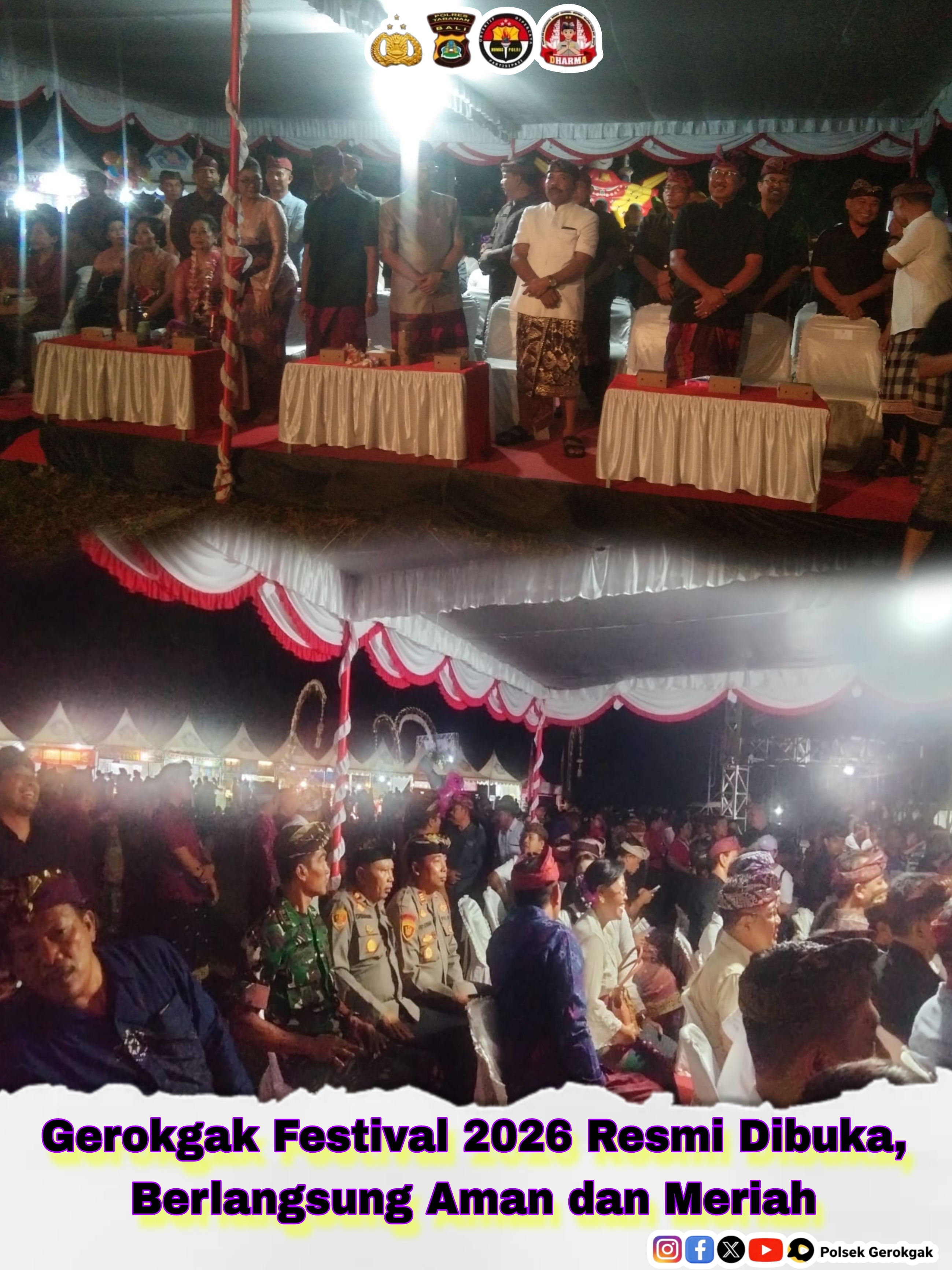 Kegiatan pembukaan Gerokgak Festival Tahun 2026 berakhir pada pukul 23.45 Wita dalam situasi aman dan tertib.