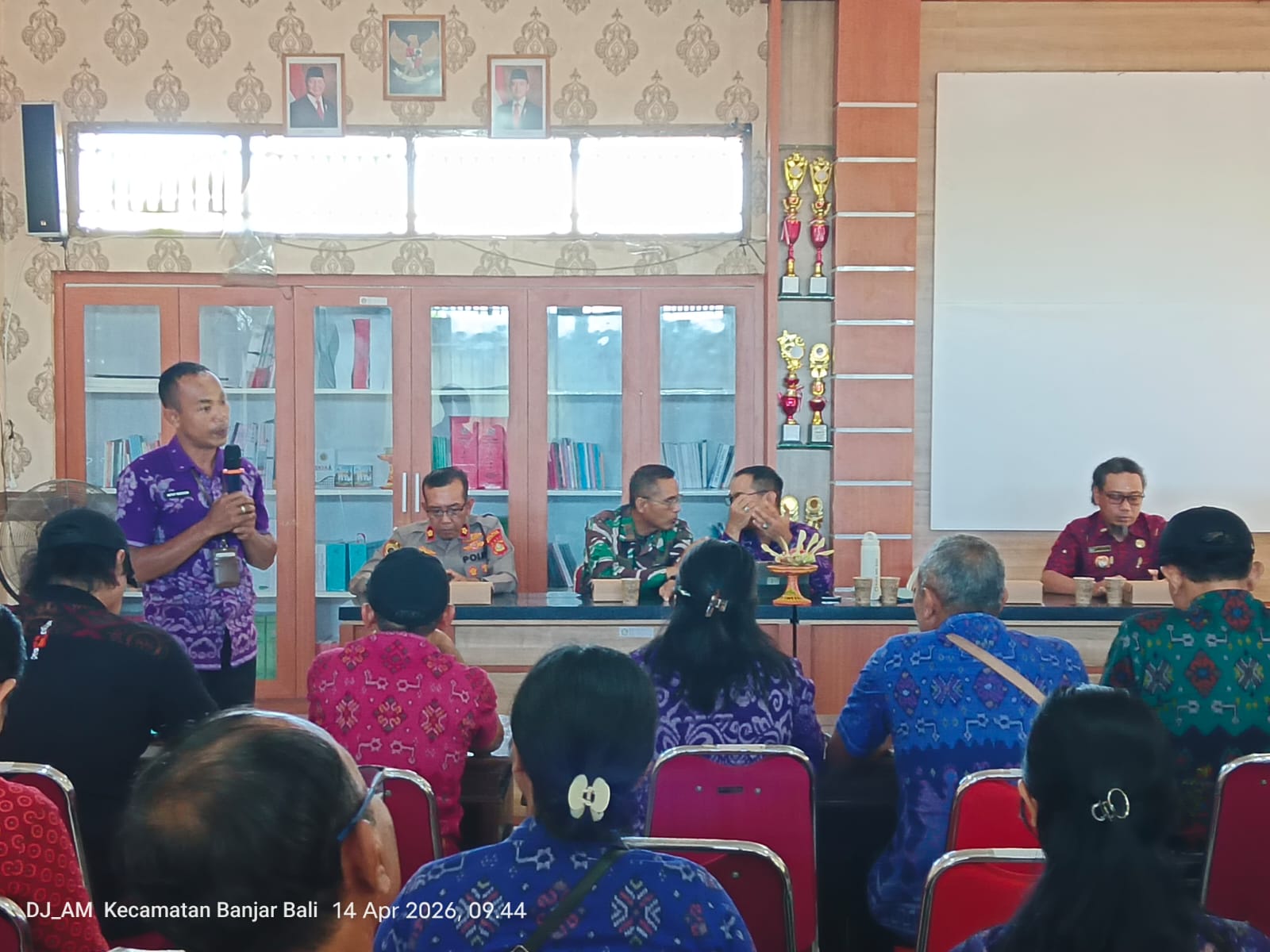 Rapat dipimpin oleh Camat Banjar Putu Widiawan, S.Sos., dan dihadiri oleh Danramil Banjar Kapten Inf. Made Suparsana, Sekcam Banjar, penyuluh dari Dinas Lingkungan Hidup (DLH) Kabupaten Buleleng, serta seluruh Perbekel se-Kecamatan Banjar.