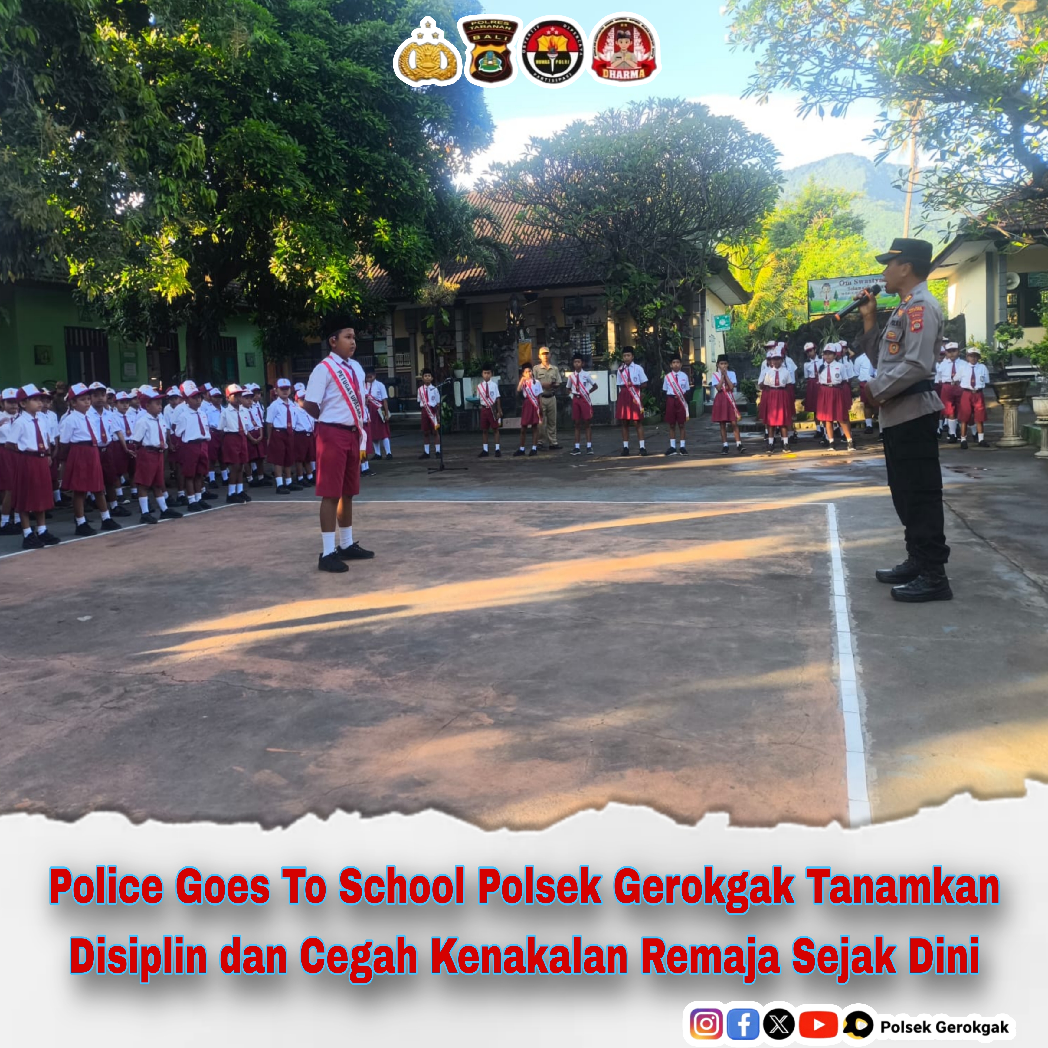 Gerokgak - Dalam upaya membentuk generasi muda yang berkarakter serta meningkatkan kesadaran akan pentingnya keamanan dan ketertiban masyarakat (kamtibmas), Polsek Gerokgak melaksanakan kegiatan Police Goes To School di SD Negeri 1 Desa Musi, Senin (20/04/2026) pagi.