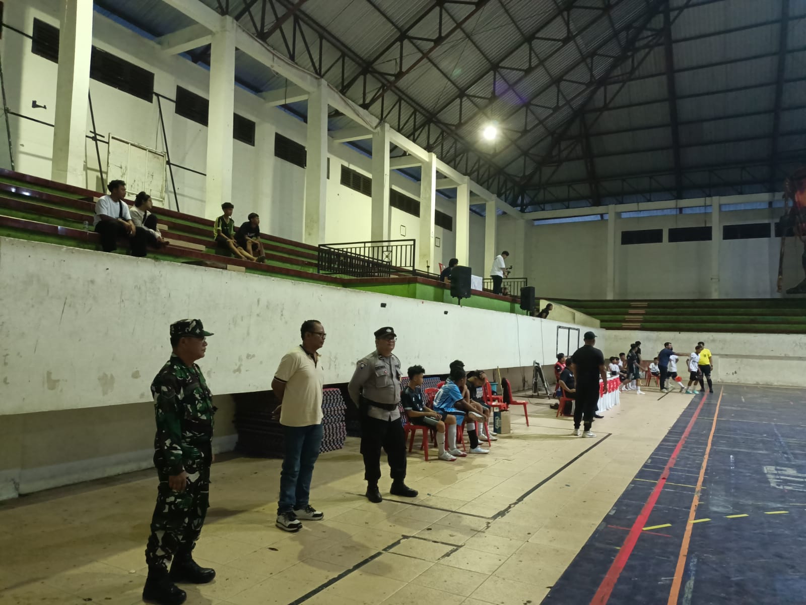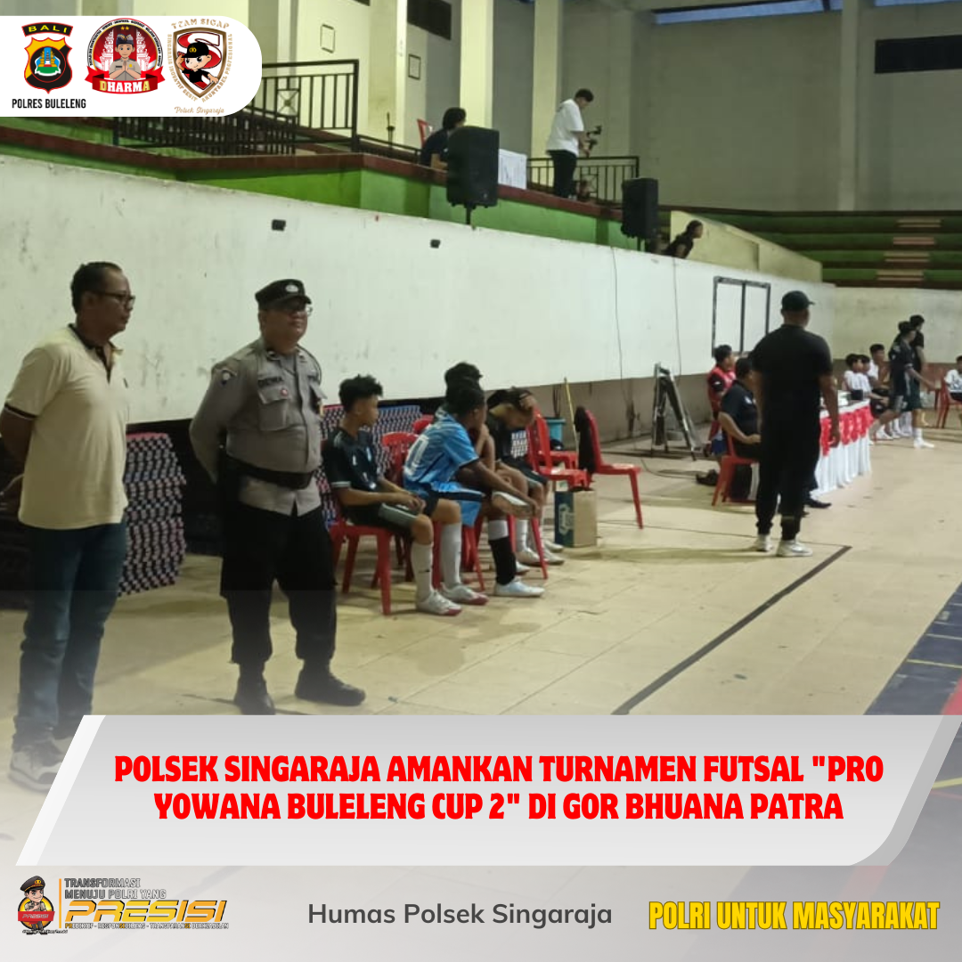 SINGARAJA – Suasana meriah menyelimuti Gedung Indoor GOR Bhuana Patra Singaraja pada Minggu (15/2) sore. Personel Polsek Singaraja bersama Bhabinkamtibmas Kelurahan Banjar Jawa dikerahkan untuk memastikan keamanan jalannya turnamen futsal bergengsi tingkat SMP.